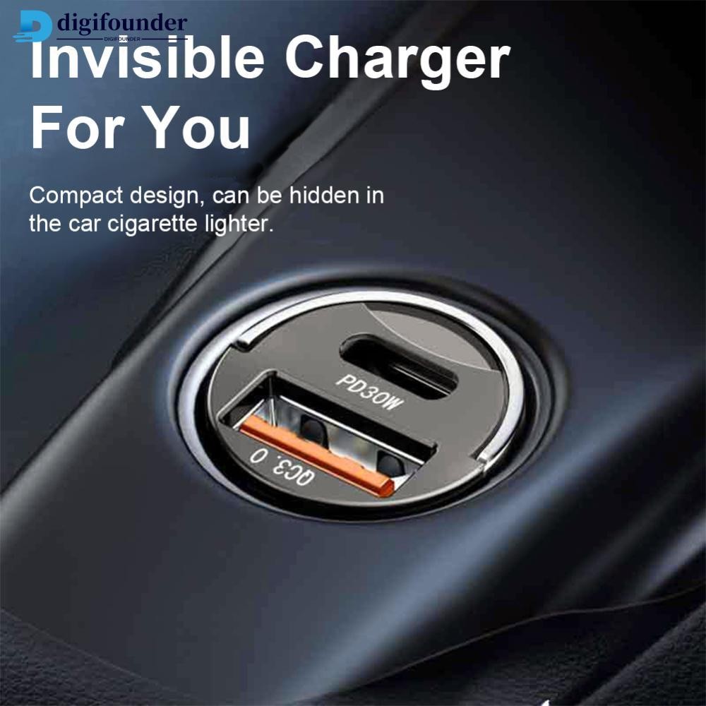 DIGIFOUNDER 200W Mini Carro Porta Dupla Carregador Usb Tomada De Carregamento Rápido 100w PD Tipo C Portas Duplas De Metal Invisível O5T1