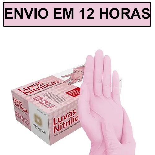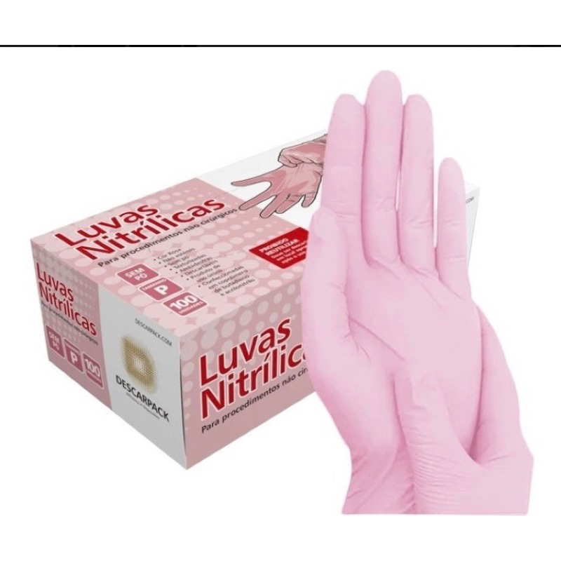 Luva Procedimento Nitrílica Descartável Rosa Caixa Com 100 Unidades Pink Nitrilo