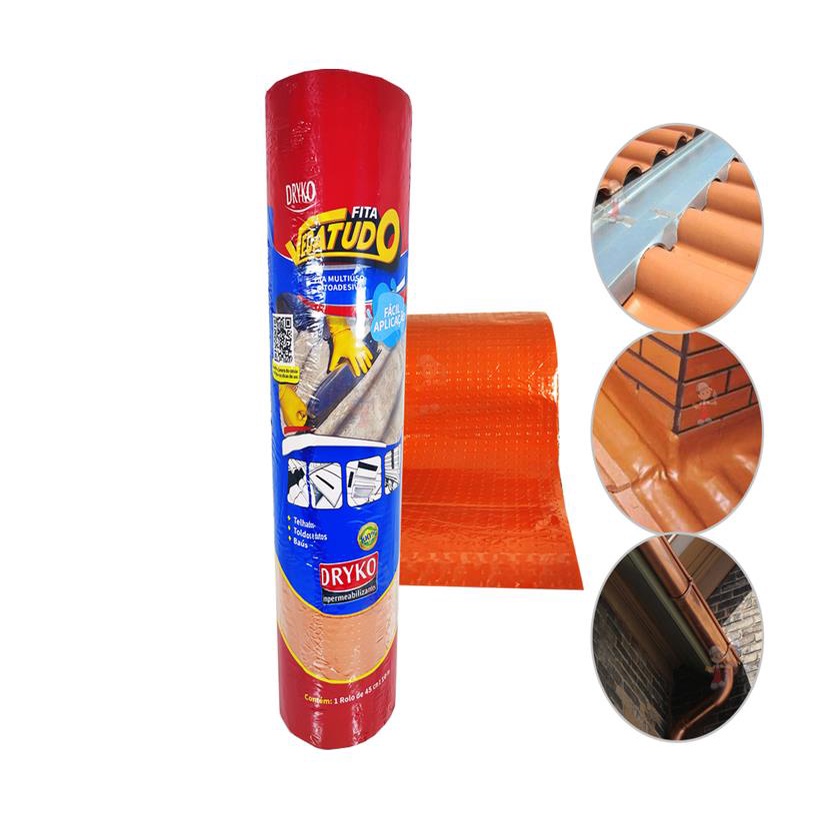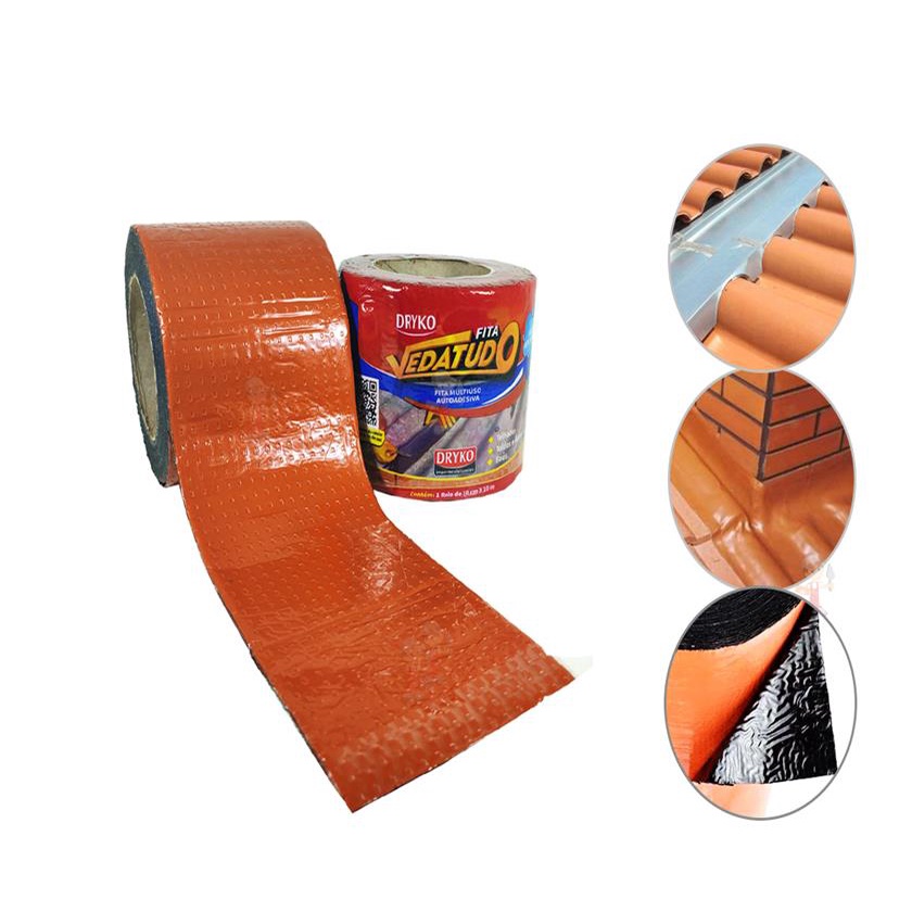 Fita Multiuso Manta Asfaltica Adesiva para Reparos Rufo Calha Telhado Veda Tudo Dryko 10cm 20cm 30cm POR METRO
