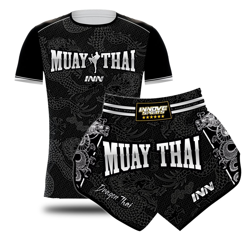 Conjunto Muay Thai Masculino Camisa e Short Dragon Thai Cinza