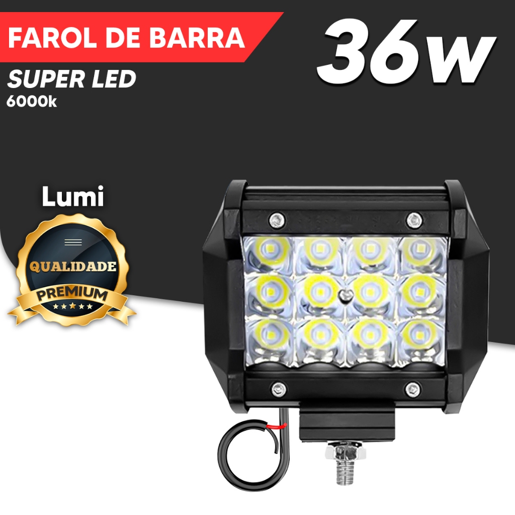 Kit Farol De Barra Quadrado 10cm 12-24 LED 36-72w 12-60V IP65 Branco Frio