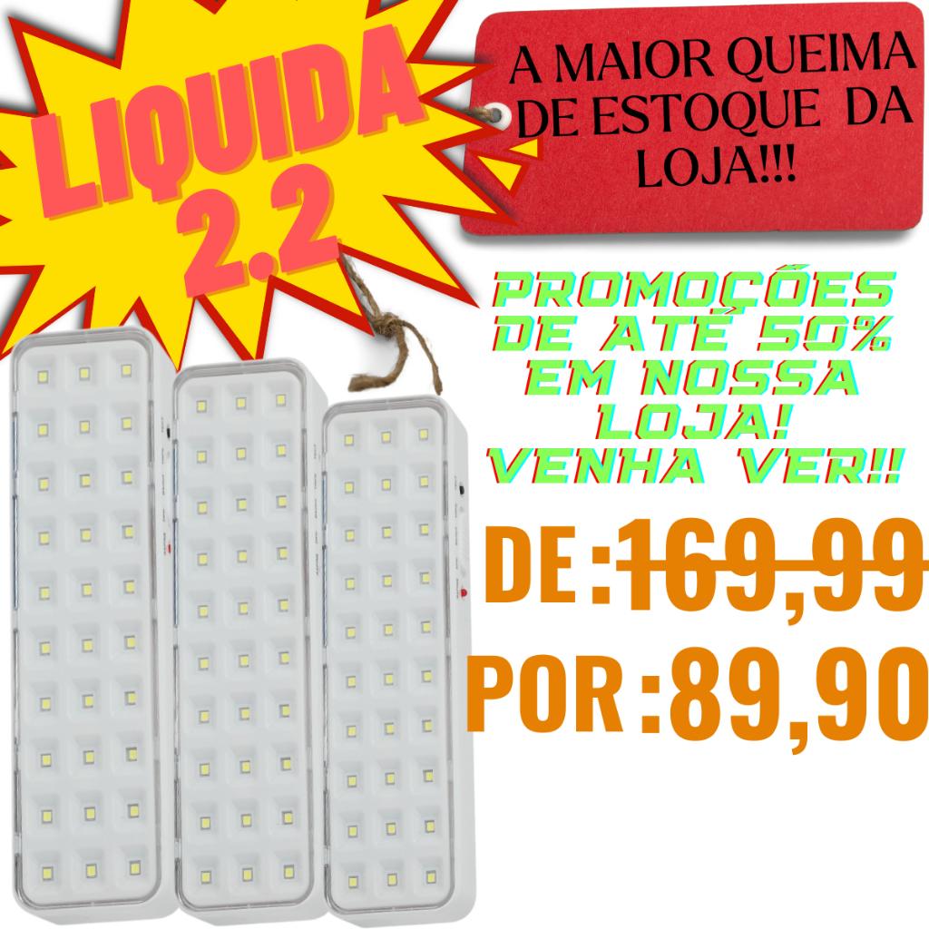 Kit 2 Luminárias de Emergência Segurimax LED 30 - Recarregáveis, Bivolt, Forte iluminação, Luz Emergencial Branco Frio 110/220V, Autonomia de Até 5h Design Compacto