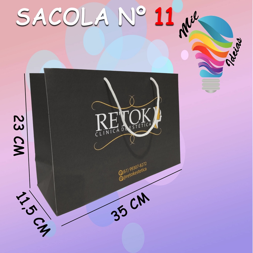 Sacola De Papel Personalizada Festa Loja Eventos 20 unidades (14X14X06cm) com alças de cetim