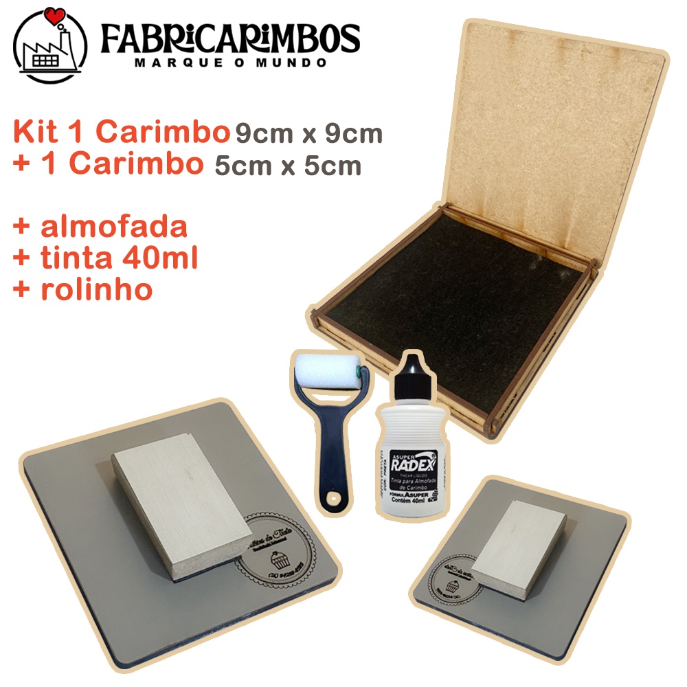 Kit 2 Carimbos - (1)9x9 e (1)5x5cm + almofada e tinta. Carimbo Personalizado para Sacolas