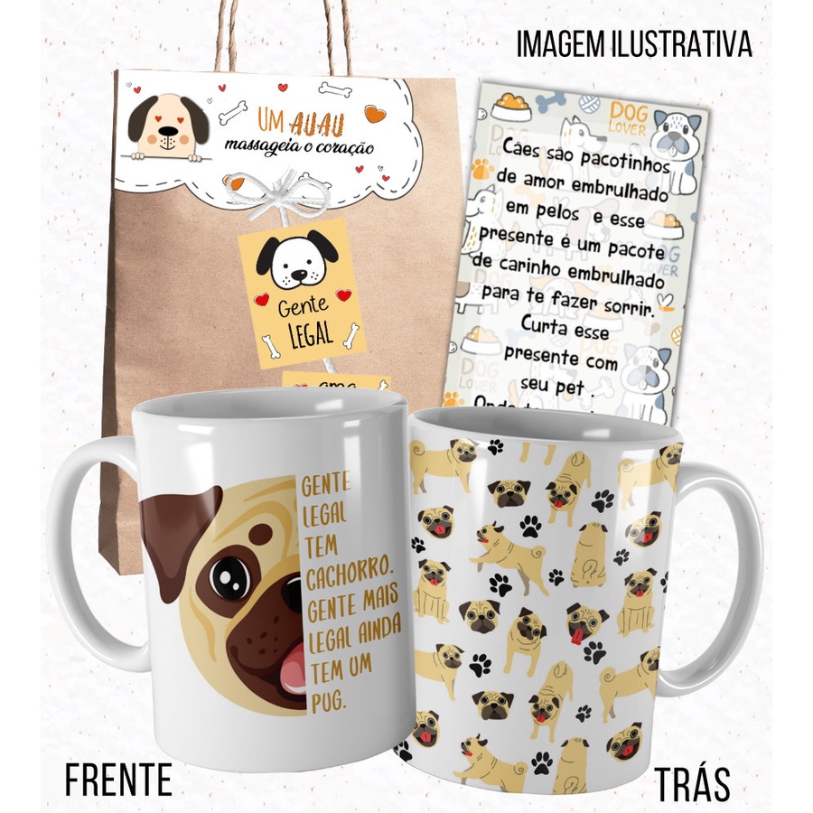 Caneca Cachorro Pug Amigo Gente Legal Tem um Pug/ Pai de Cachorro/ Mãe de Cachorro