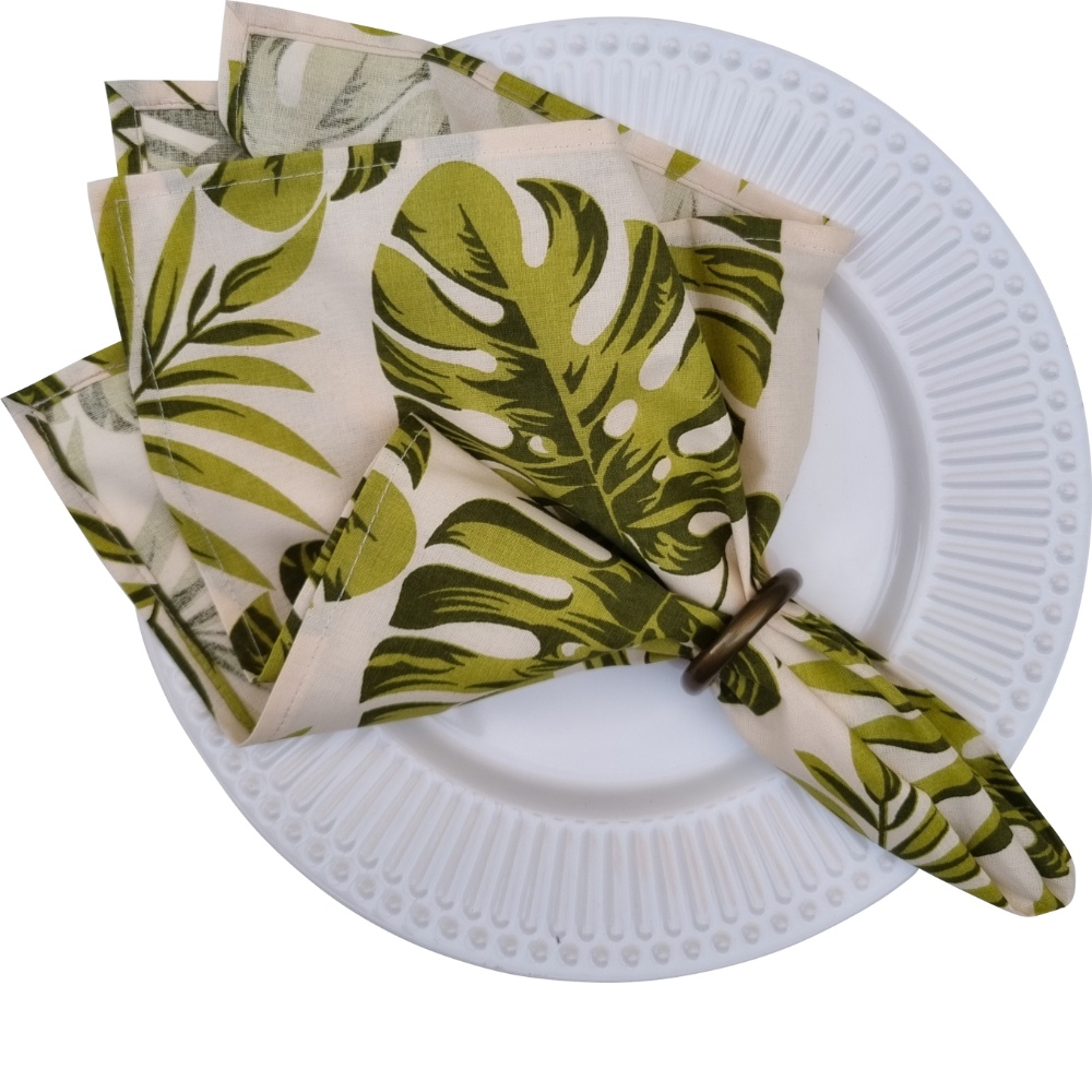 Guardanapo de Tecido 100% Algodão Tricoline Estampado 45x45 com Argola e Acabamento em Bainha para Mesa Posta