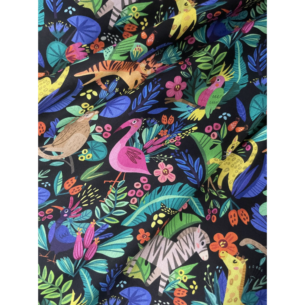 Tecido Tricoline Estampa Selva com Girafa, Onça, Flamingo 100% Algodão