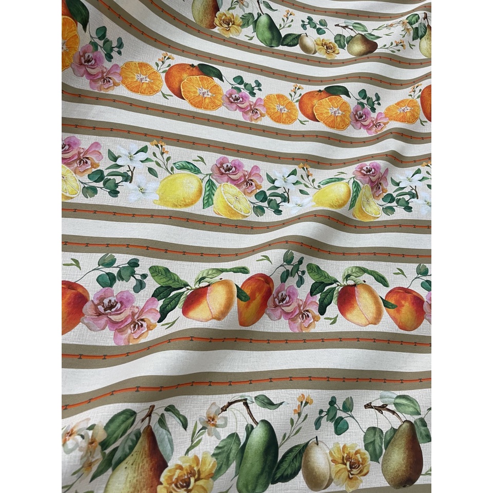 Tecido Tricoline Digital Estampa com 8 Faixas Flores e Frutas 100% Algodão