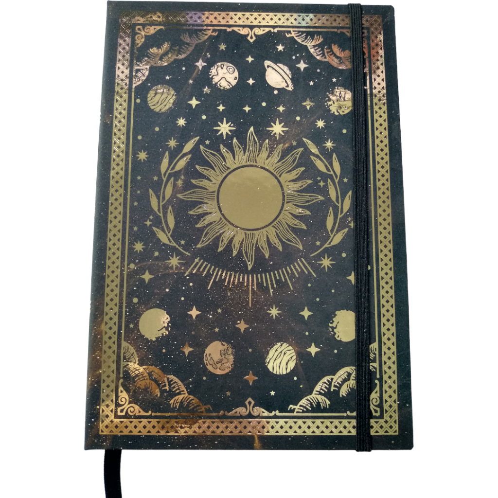 Caderneta Caderno Grimorio Sol Orbita Planetas Tipo Moleskine Sketchbook Bullet Journal Desenho Bloco de Notas