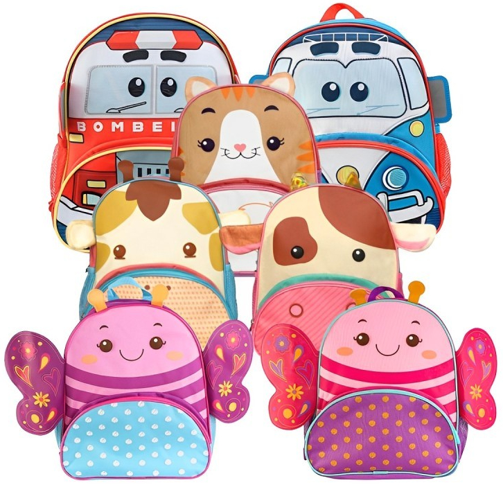Mochila Escolar Infantil Costas Passeio p/ Bebês Crianças Excursão Creche Viagens Clio Pets Zoo Bichinhos Animais 3D