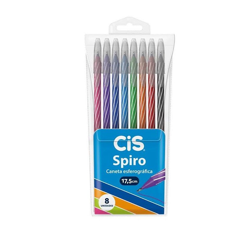 Caneta Esferográfica 0.7mm Spiro Cis - Estojo 8 Und