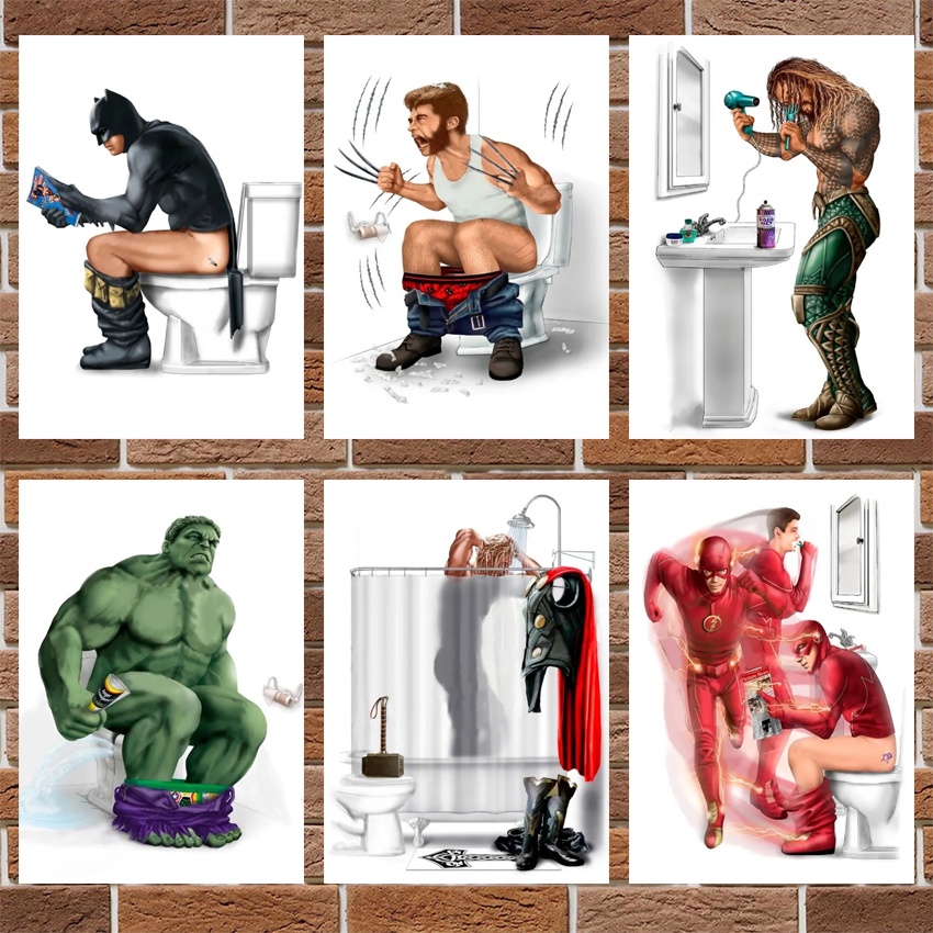Quadro Placa Decorativa Super Heróis Banheiro - Decoração Engraçada Banheiro em MDF