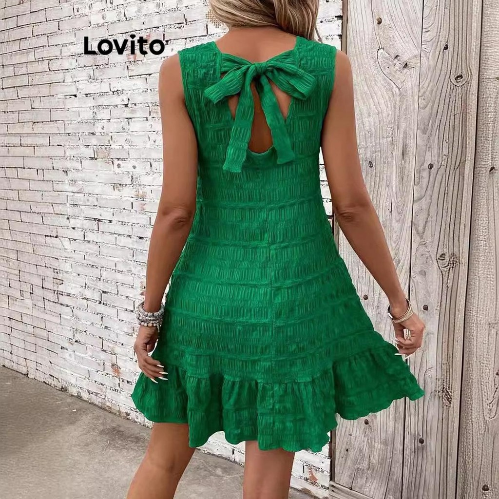 Lovito Vestido elegante liso com babados com bainha e laço nas costas para mulheres LNL72504