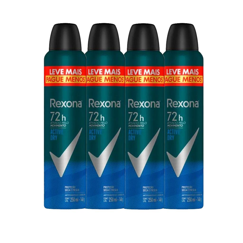 Kit Desodorante Antitranspirante Aerosol Rexona Active Dry 72 horas 250ml - 4 Unidades