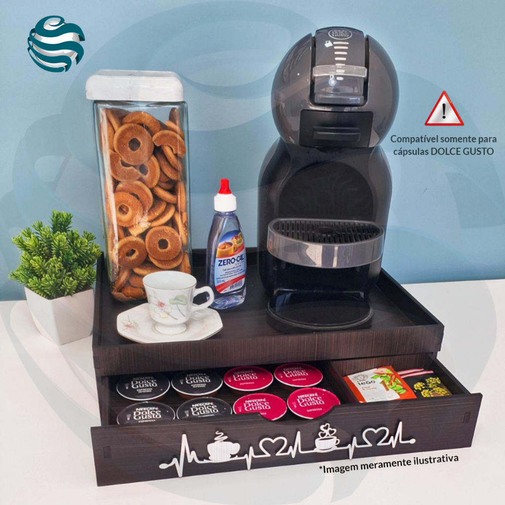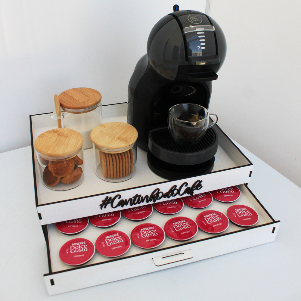 Bandeja Porta Capsula com Gaveta Dolce Gusto branca organizadora servir mdf café chá apoio cafeteira garrafa