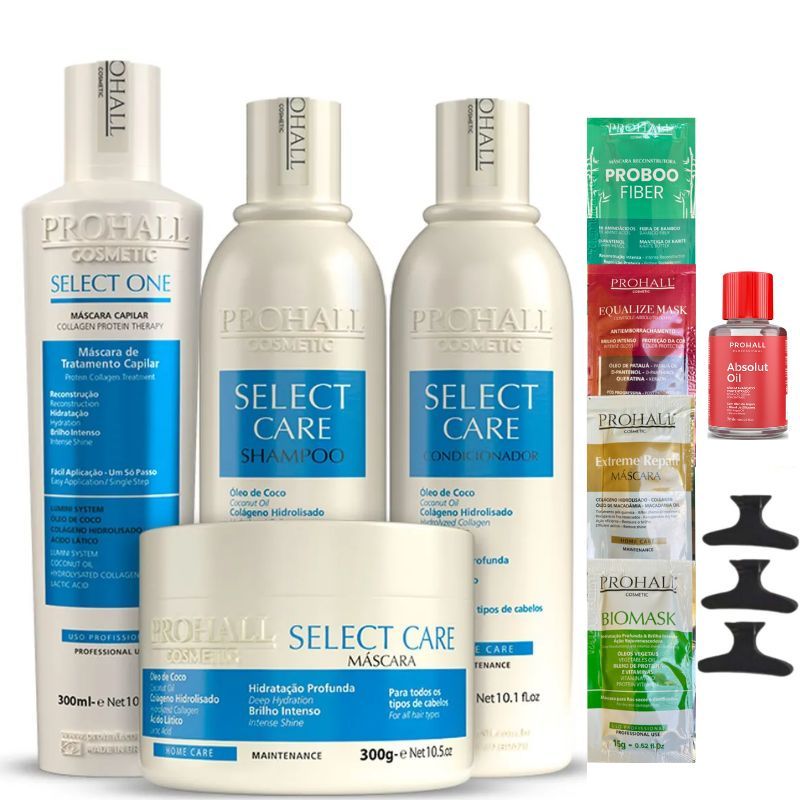 Prohall Escova Select One Progressiva - 1 Litro + Sache + Óleo + Kit Aplicação + Pente