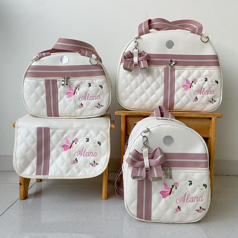 Kit de bolsas personalizadas brasão de borboleta. Conjunto de bolsas maternidade para meninas, personalizadas tema borboleta. Dilô Kids