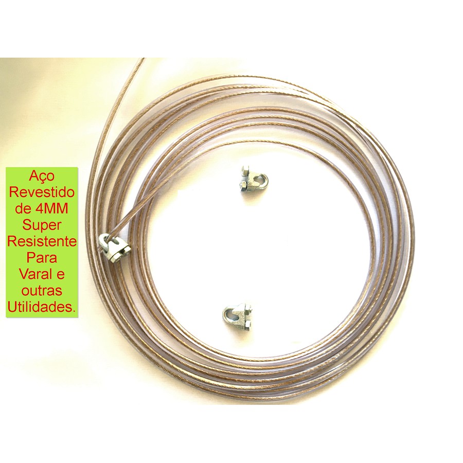 Cabo Aço Revestido de 4mm P/ Varal com 15 metros + 4 Clips *Envio Imediato*