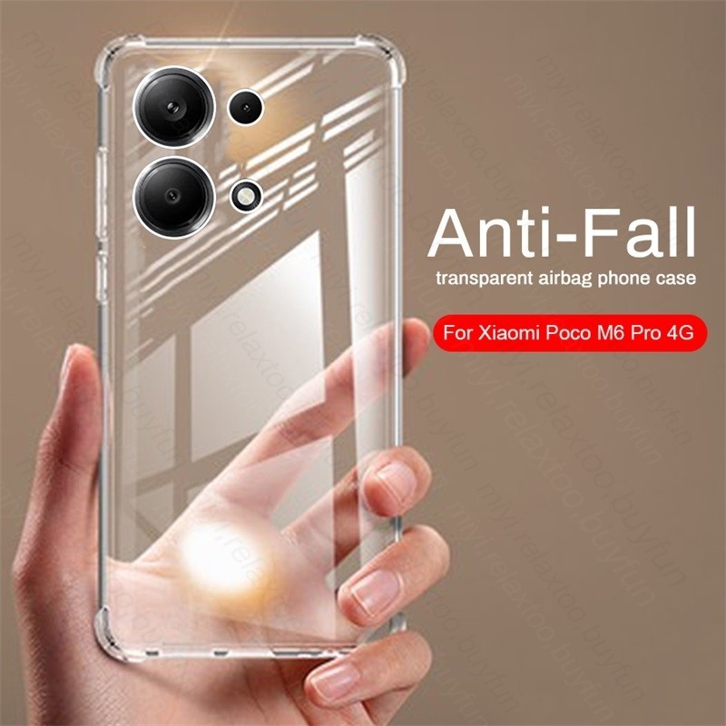 Capa Protetora Macia Transparente TPU Para Câmera Xiaomi Poco M6 Pro 4G Airbags À Prova De Choque Coque Poxo Poko Little M 6 M6Pro 4G