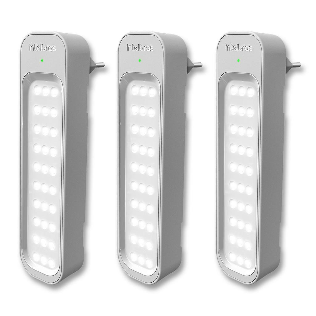 Kit 3 Lâmpadas Luminárias De Emergência 30 Leds 1w Recarregável Bivolt - Intelbras LEA 150 - Instalação Fácil, Até 40m2