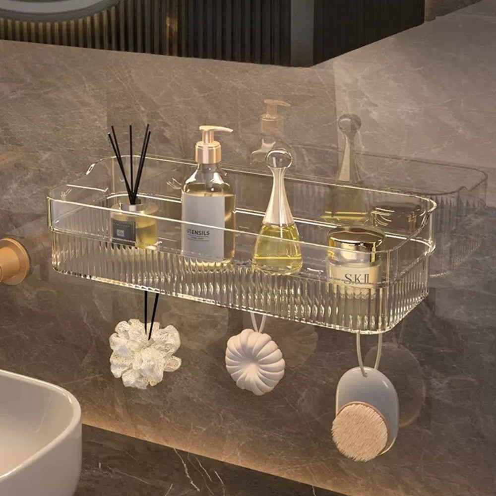Suporte De Shampoo Prateleiras De Banheiro Sem Furo Acrilico linhado/ Porta Toalha Retangulo