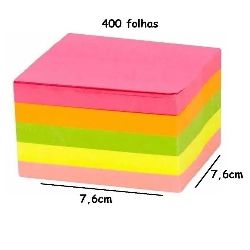 Bloco de notas adesivas 76 x 76mm 400fls - bloco recado folha autoadesiva grande 5 cores