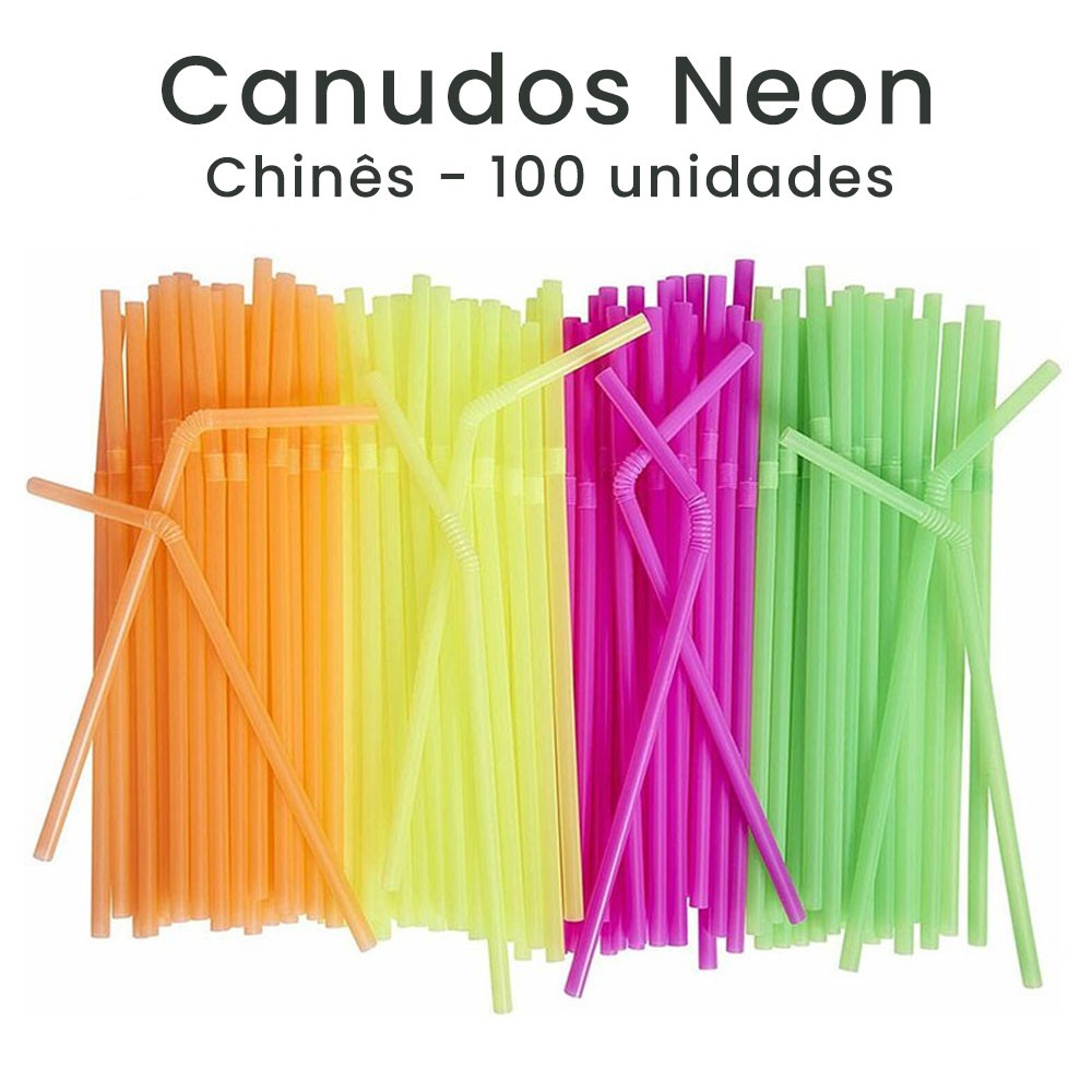 Canudo Neon Flexível Chinês 100 unidades 5mm ideal para bares, festas e comemorações