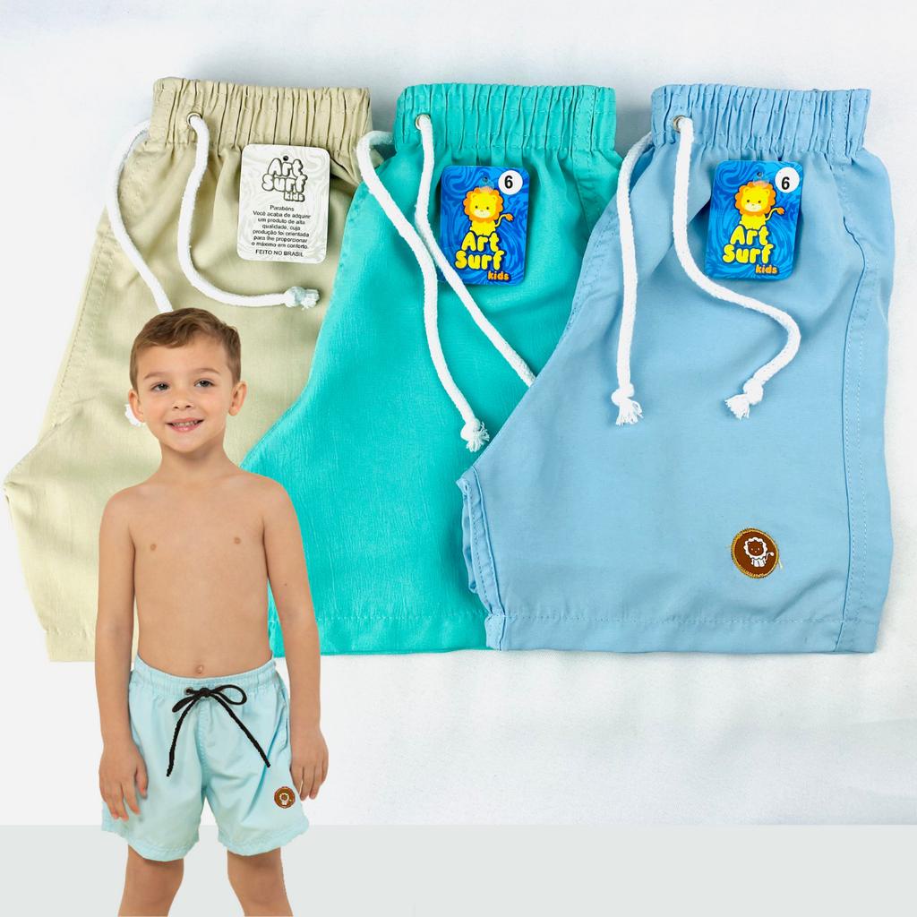 kit 3 bermuda infantil tactel masculino 0 a 14 anos moda praia juvenil férias short masculina