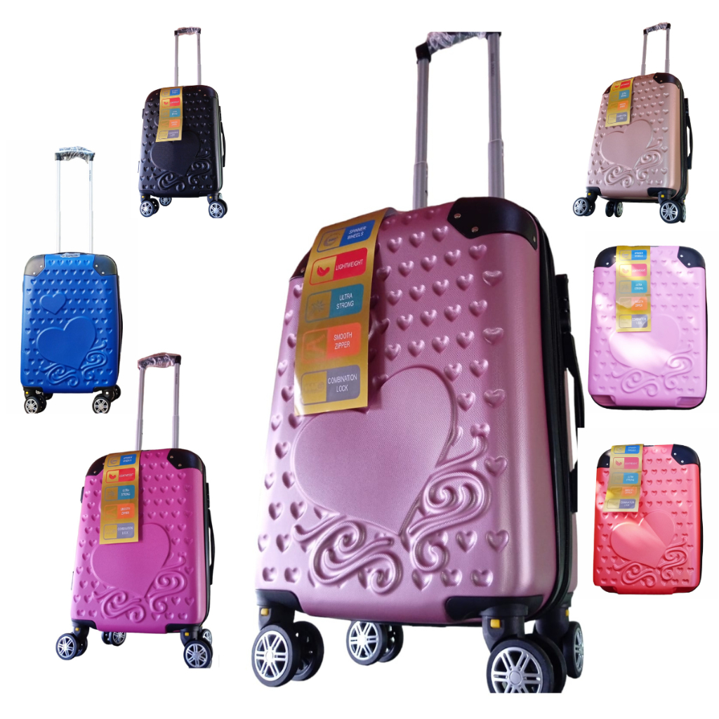 mala de viagem bordo zíper expansível com rodinhas 360° desenho de coraçao 55x35x25 20"