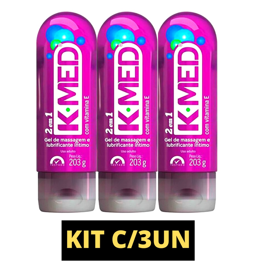 Kit com 3 unidades K-med 2 em 1 roxo 203g lubrificante intimo massagem CIMED