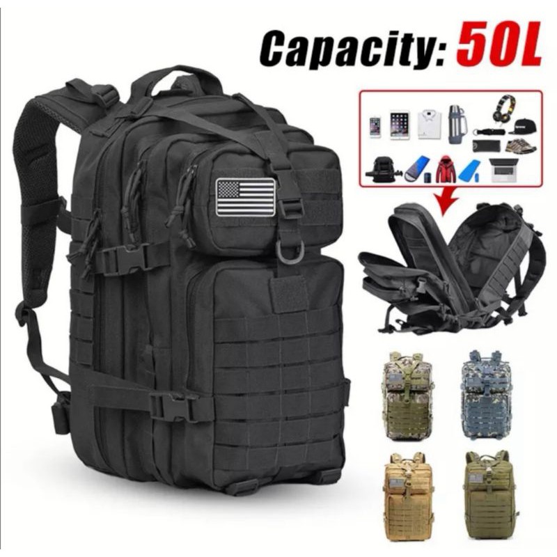 Mochila Tática Camping Militar 50 Litros Resistente A Água acampamento escolha sua cor