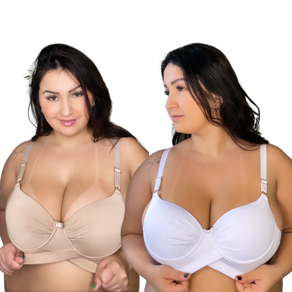 KIT 2 Sutiã Plus Size Com Bojo Cruzado Reforçado Liso
