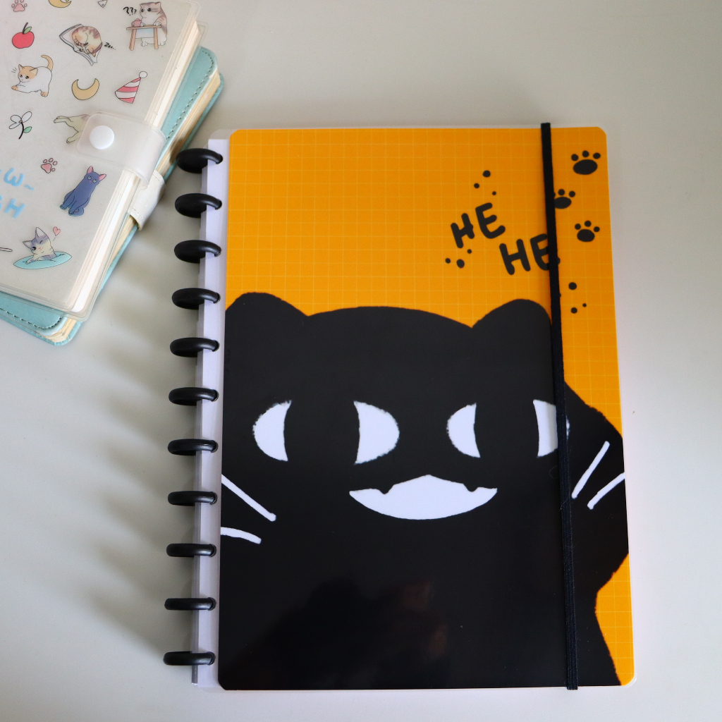 Caderno de Discos Miau Gatinho Preto Minimalista