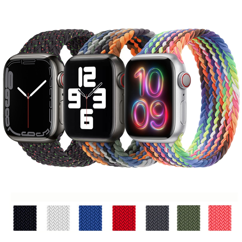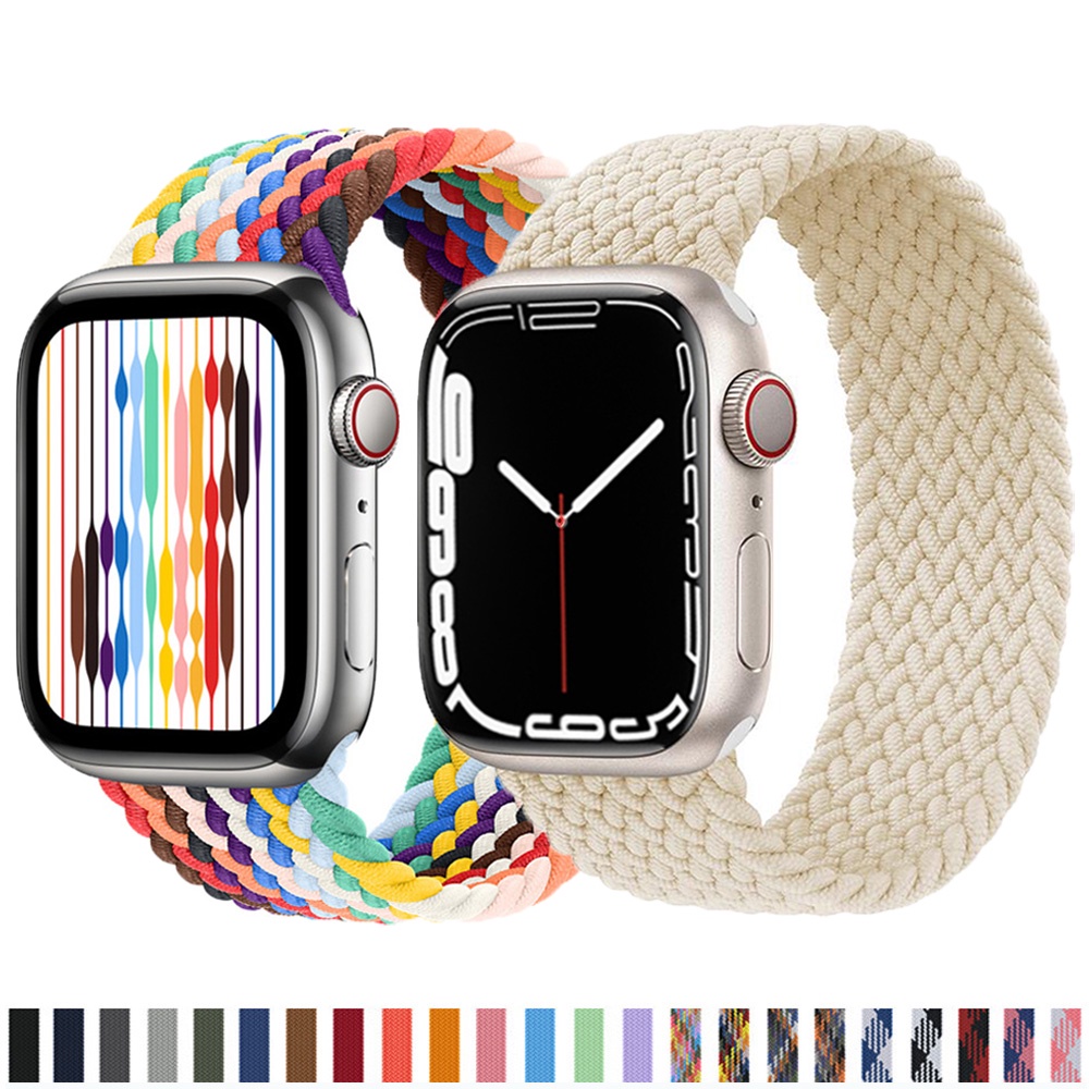 Trançado Loop De Solo Para Iwatch 7 Apple Watch Band 45mm 41mm 44mm 40mm 38mm 42mm Tecido De Nylon Cinto Elástico Pulseira Iwatch Série 7 3 4 5 Se 6 Cinta