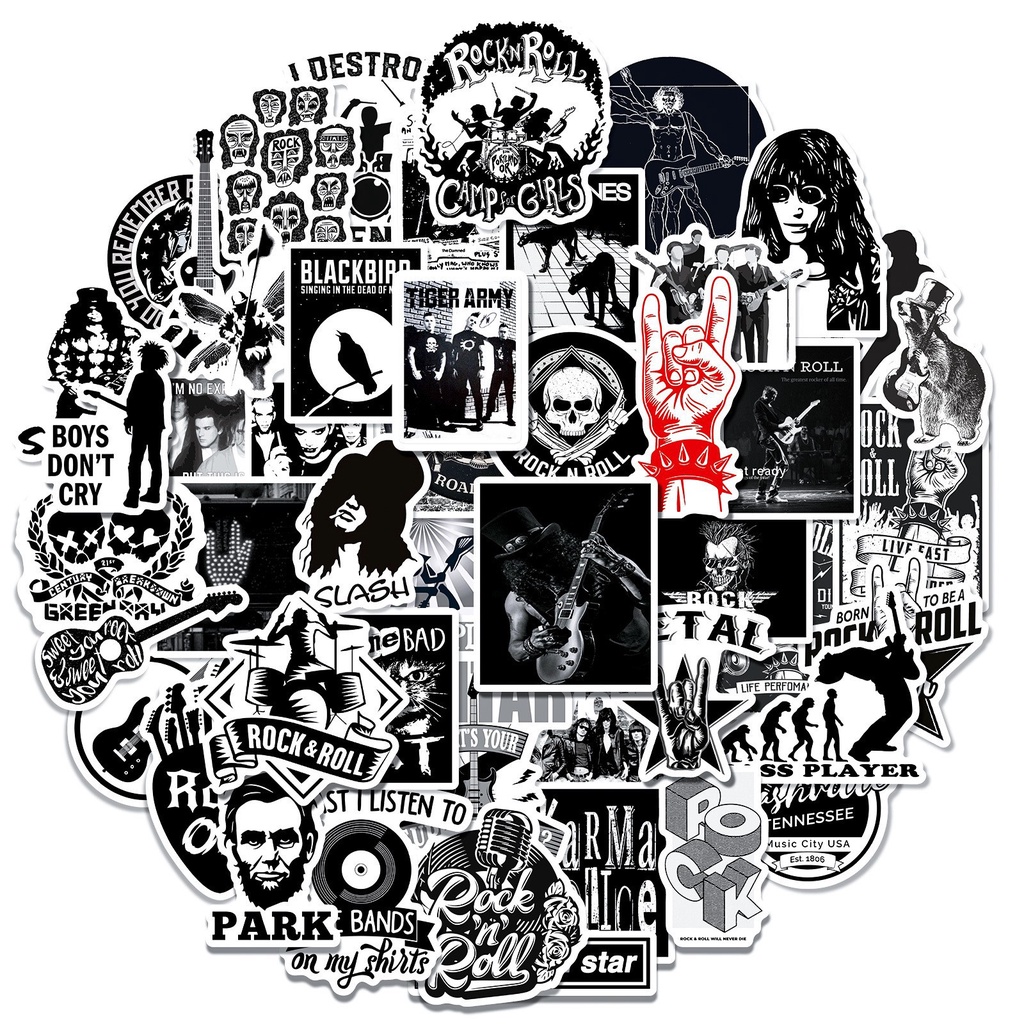 50PCS Adesivos De Metal Preto E Branco Rock Band Stickers Para Bagagem Caixa De Telefone Decalques Notebook Crianças Presente