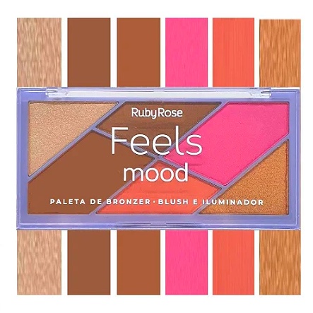 Paleta de brozer blush e iluminador feels mood ruby rose HB-7528