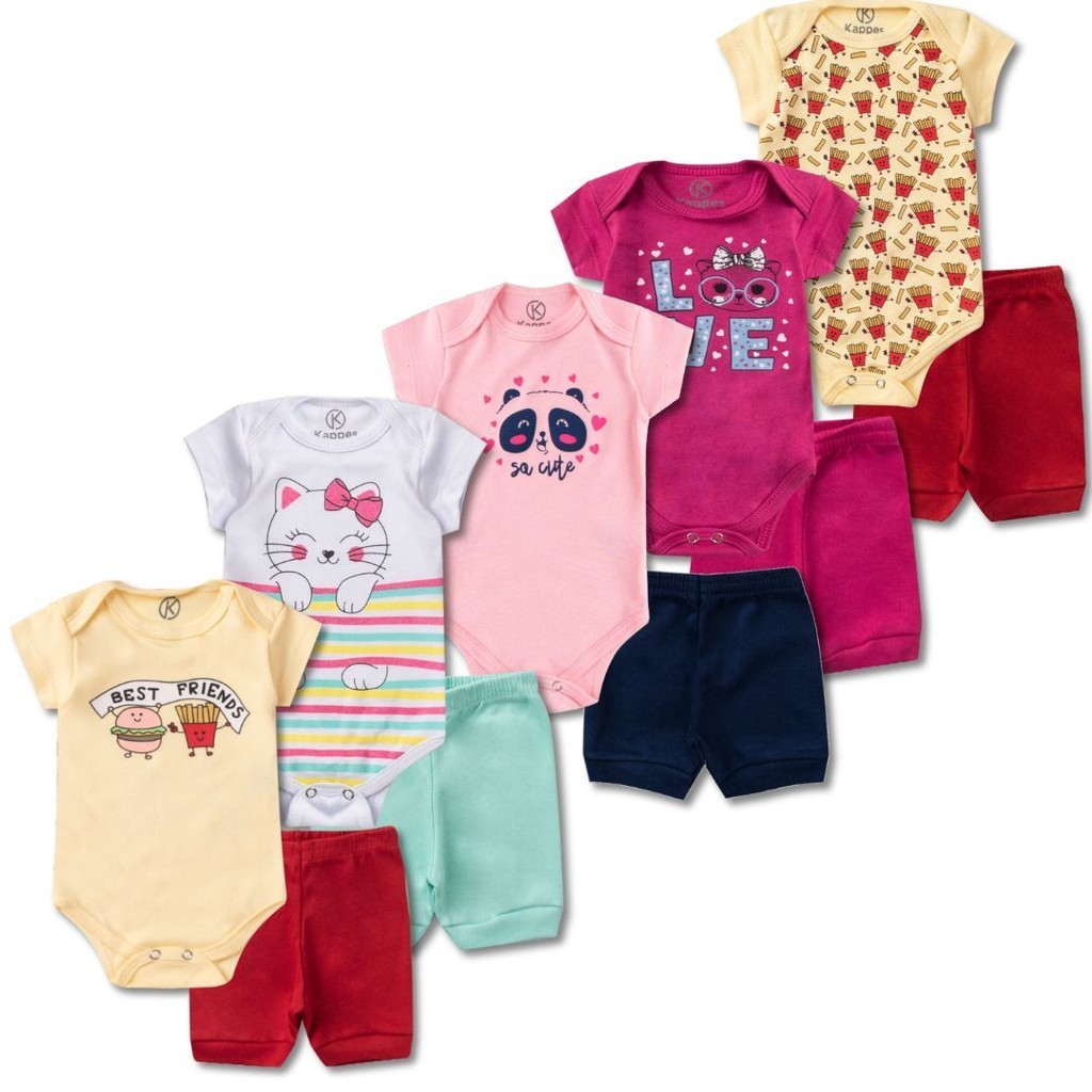 kit 10 peças Roupa Bebê Body e Shorts com Punhos, Menino e Menina Suedine 100% Algodão, Enxoval Atacado RN P M G e GG
