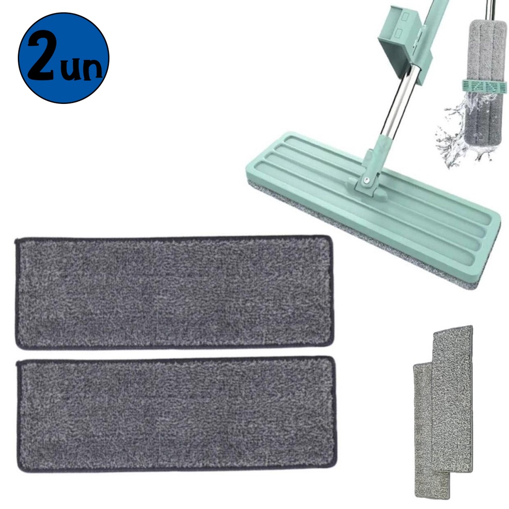 Kit 2 Refil Mop Inteligente Flat Microfibra Rodo Mágico Lavável Limpeza Refis Vassoura Mágica - 123 útil
