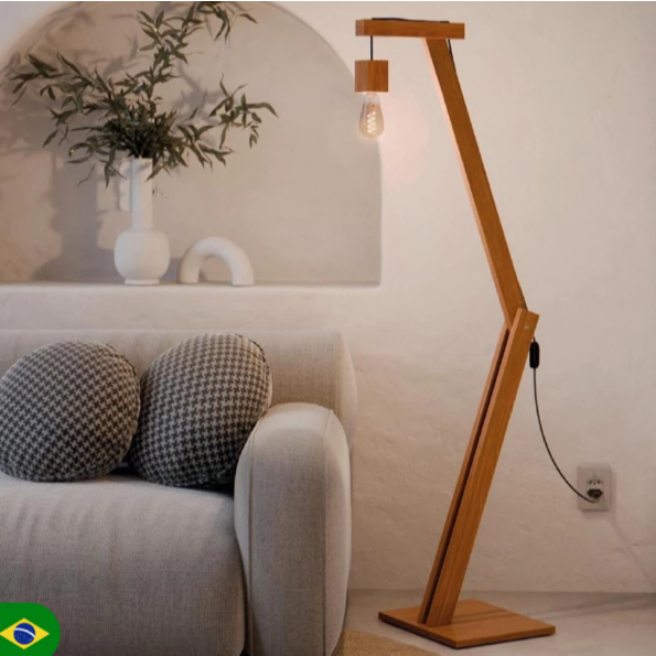 Luminária de Chão Pelicano com Pé Regulável de Madeira