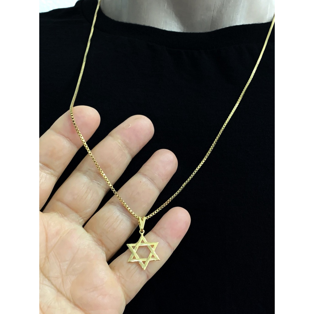 Colar Corrente Aço Inox Cirúrgico Pingente Estrela De Davi Dourada E Pingente Escudo Estrela De Davi Folheado A Ouro Tijolinho com Pingente Estrela de Davi Banhados a ouro18k Cordão Cartier masculino Pingende Dourado/Pingende Aço Inox Banhado/Pingente Est