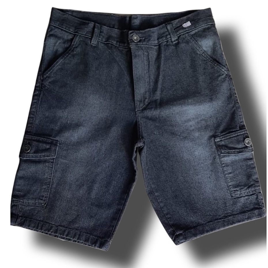 Bermuda Masculina jeans preta Cargo plus size 100%algodão cód.296/357