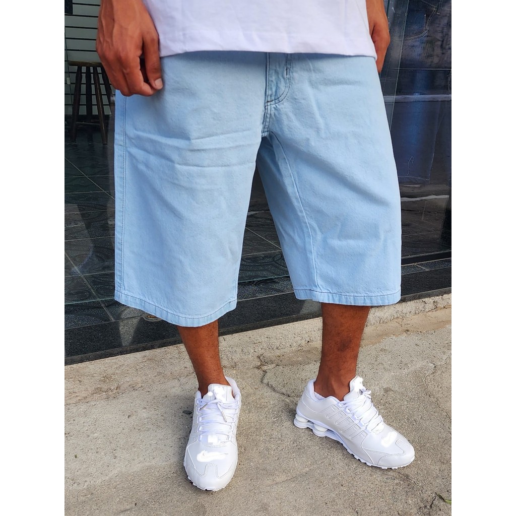 Bermuda Jeans Cargo Masculina Plus Size Original Branca Grossa Bege Balão Bolso Clara Grande Larga Preta Azul Escura