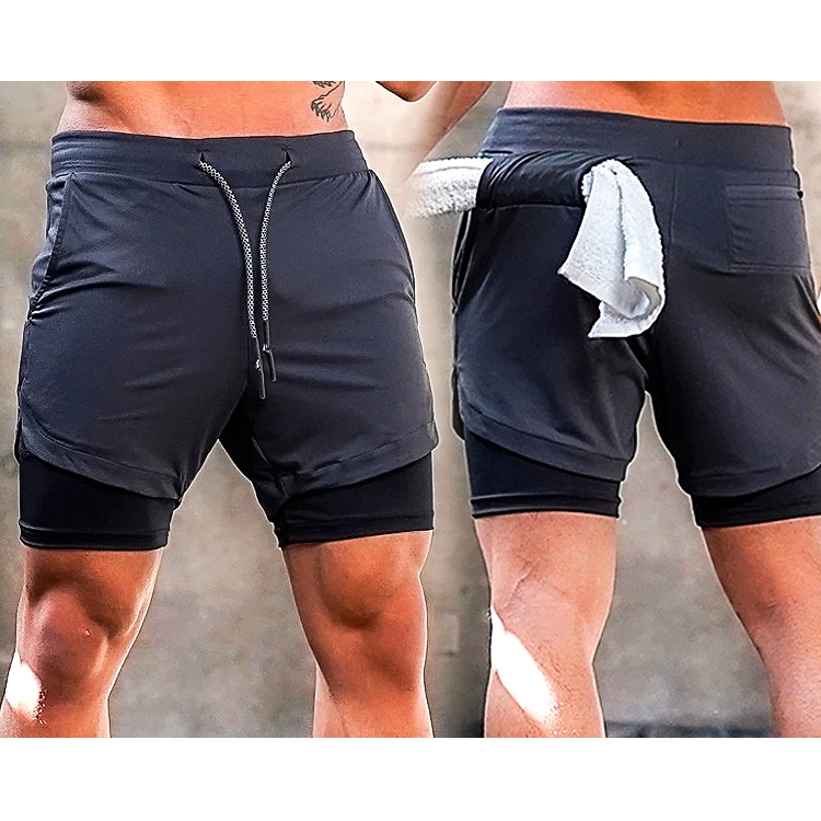 Kit 2 Bermudas 2 em 1 Para Academia Masculinas