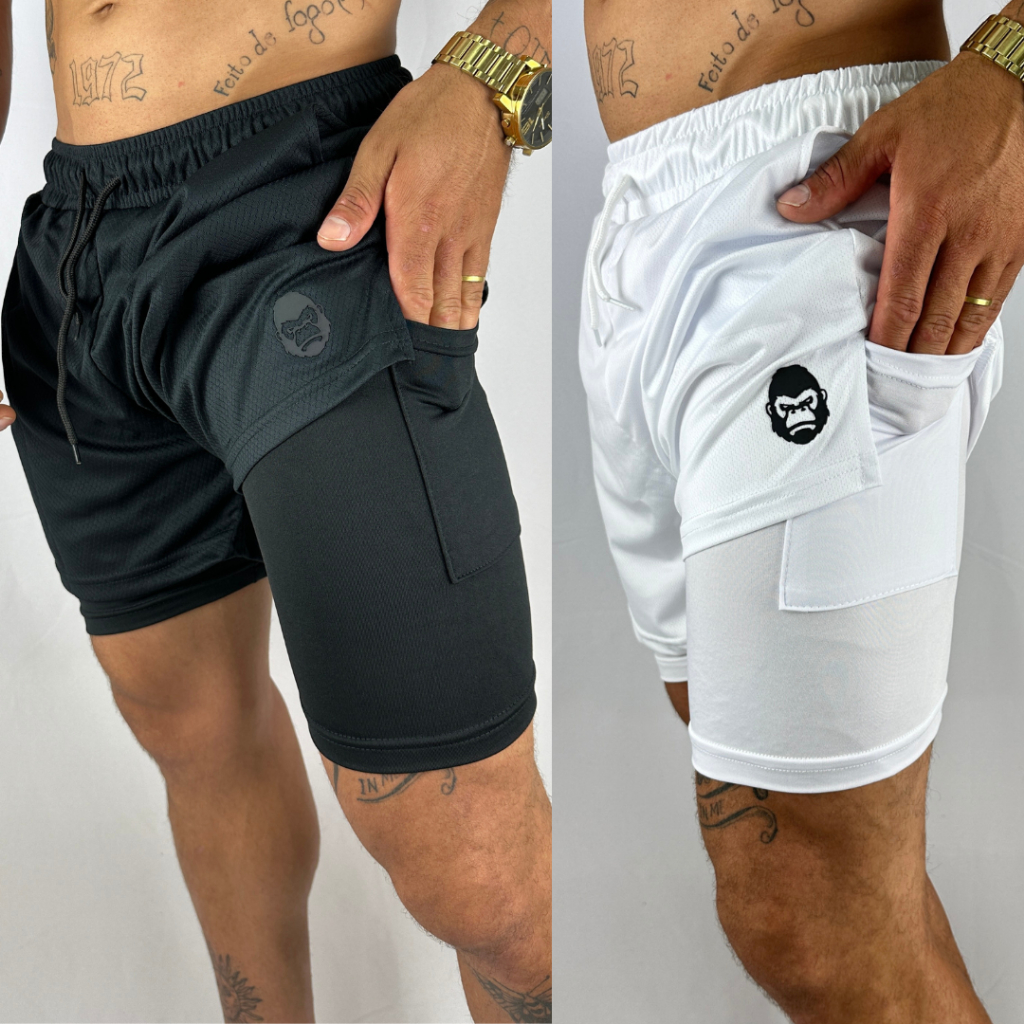 Kit 2 Bermudas Masculinas 2 em 1 com Suporte para Celular Kong