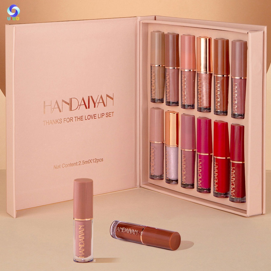 HANDAIYAN 12 Pçs/Conjunto Brilho Labial Fosco Fácil De Usar Longa Duração À Prova D'água Hidratante Não Pegajoso Líquido Batom Sexy Maquiagem Lábio