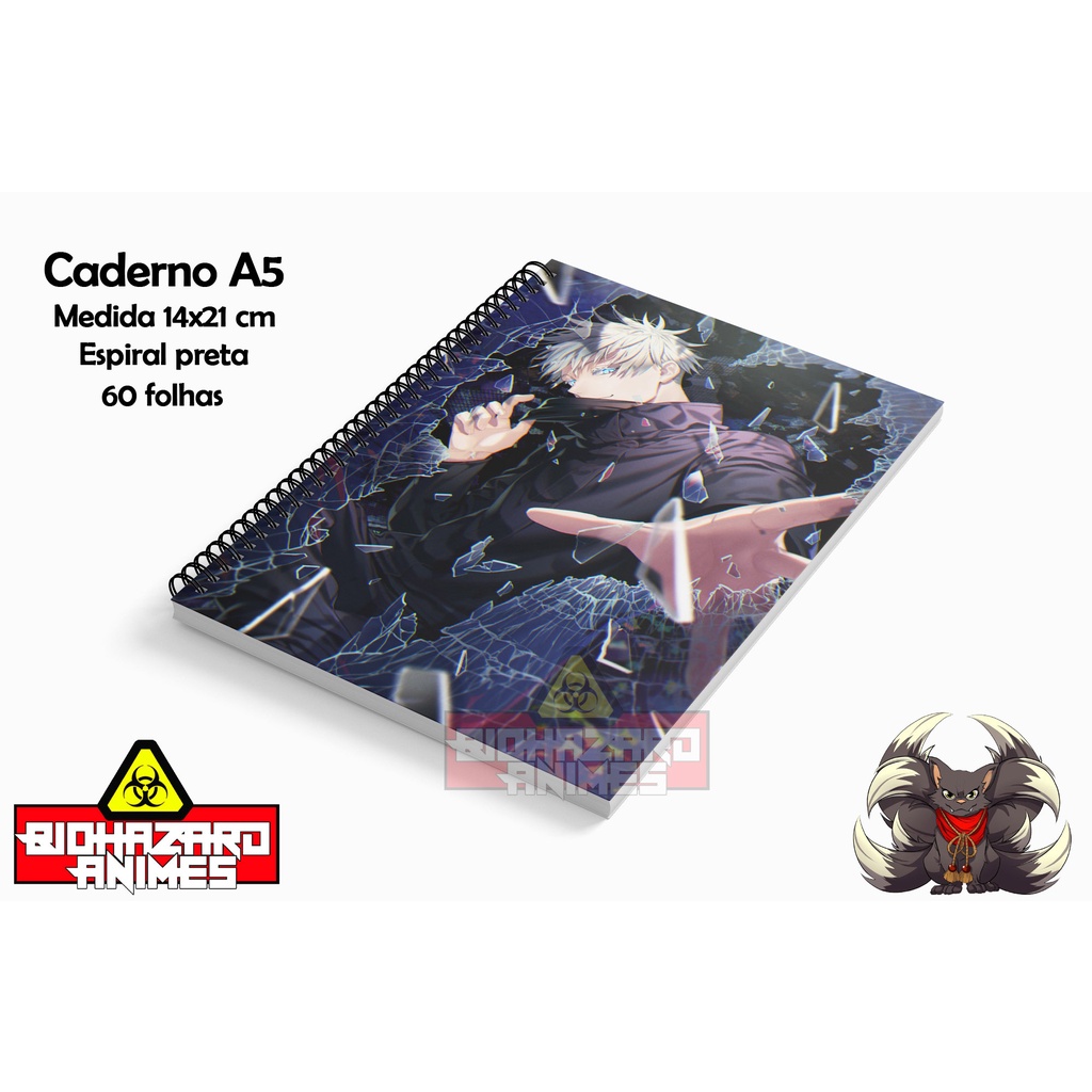 Caderno A5 Bloquinho Sketchbook Jujutsu Kaisen JJK Gojo Yuji Megumi Nobara Anime Mangá Personalizado