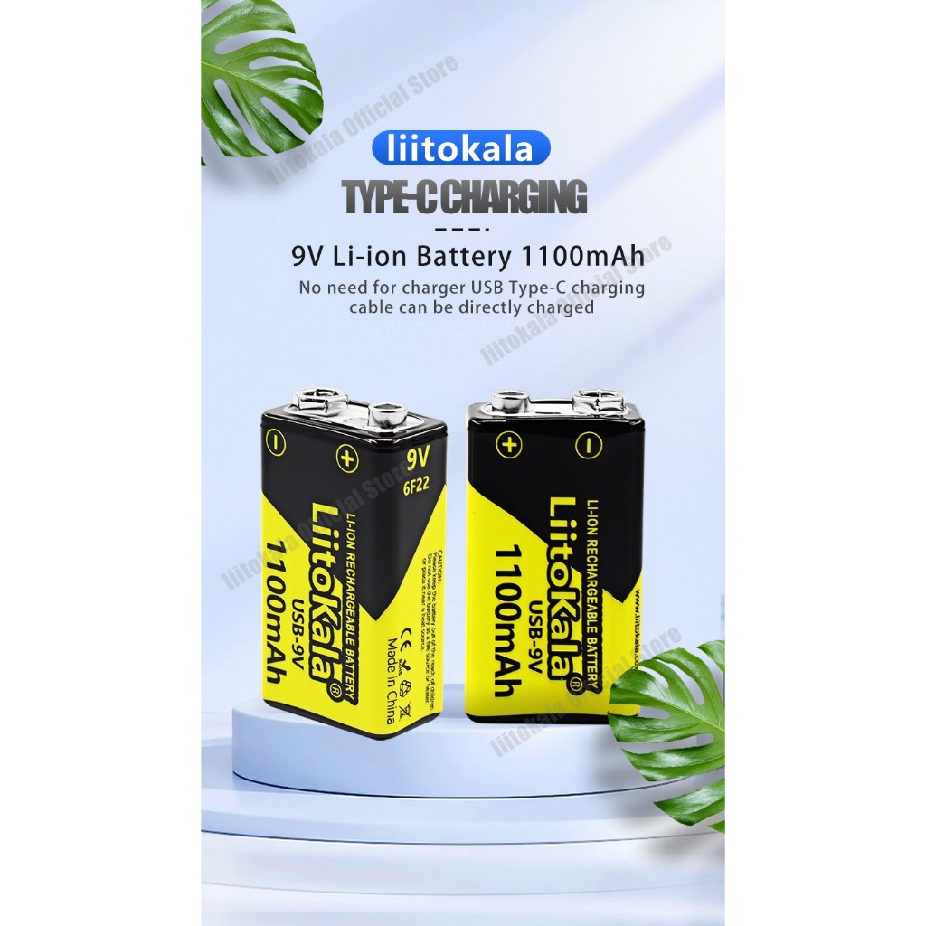 Bateria De Lítio Recarregável 9V 1100mah Usb Tipo C Li-ion LiitoKala