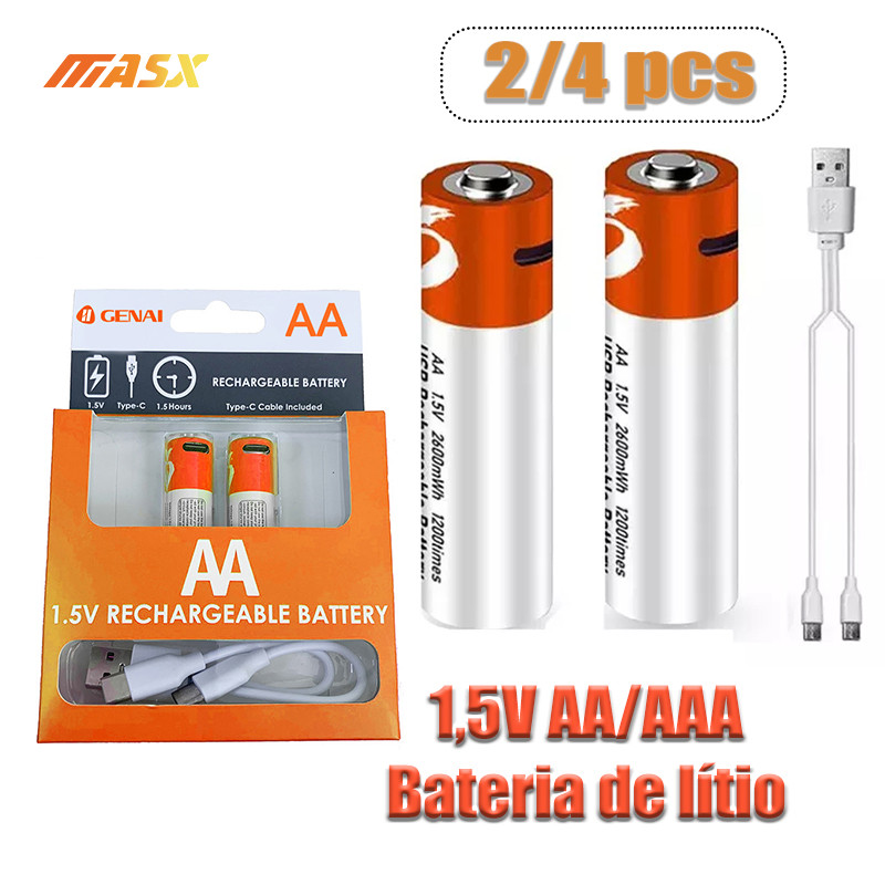2 PCS Bateria de íon-lítio recarregável USB de alta capacidade 1,5 V AA 400mAh