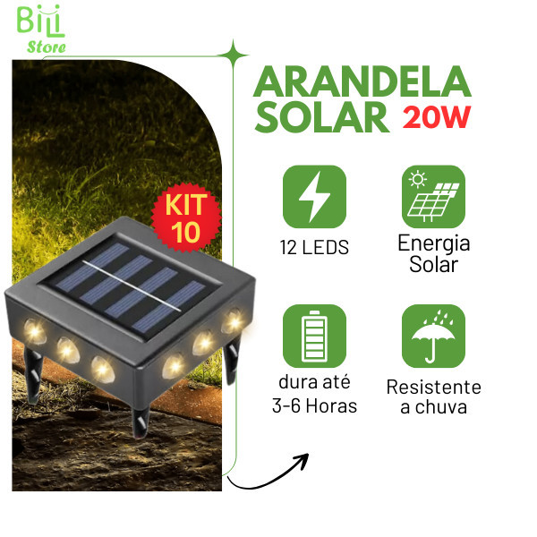 Kit 10 Luminária Arandela Solar Led 4 Focos de Luz 20W Espeto Jardim e Parede Slim 12 Leds c/suporte