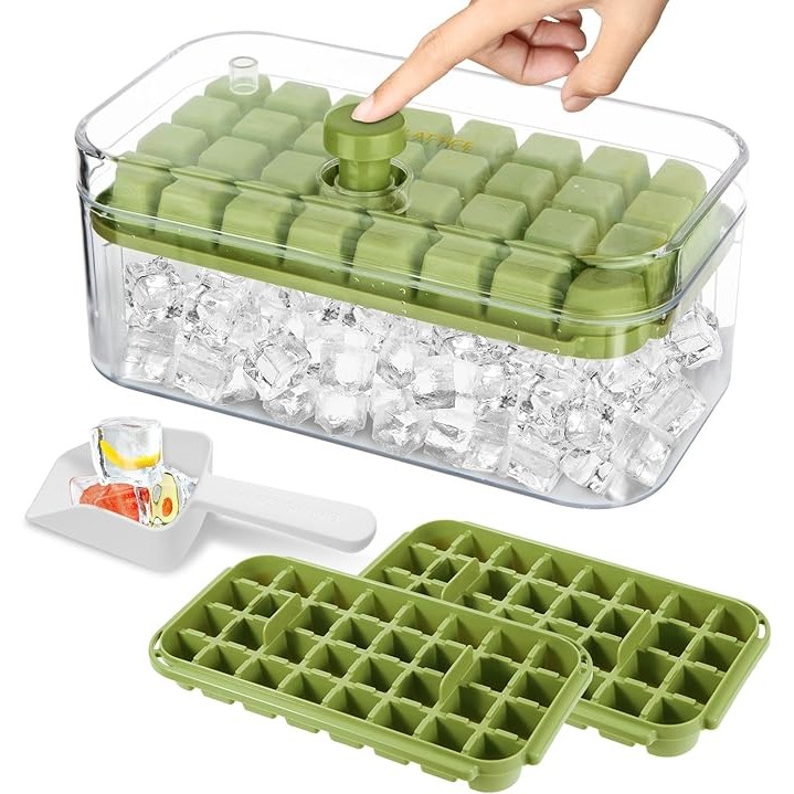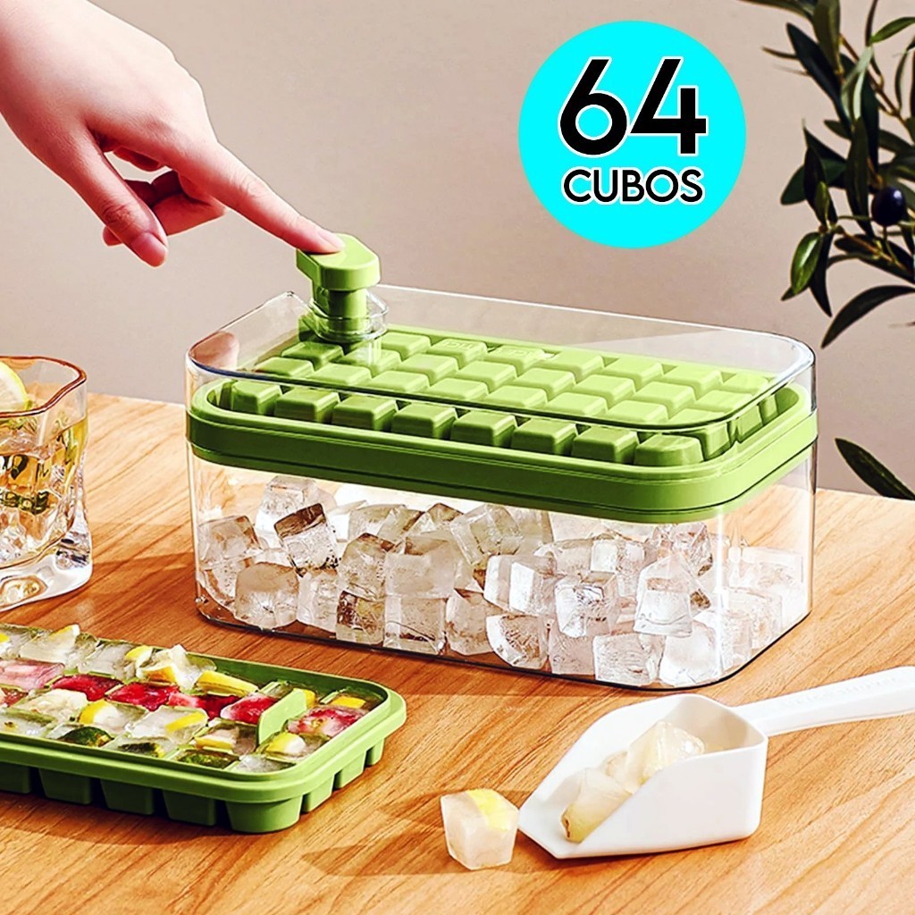 Forma de Gelo Silicone 64 Cubos Molde com Tampa e Dispenser Caixa Dupla Prática